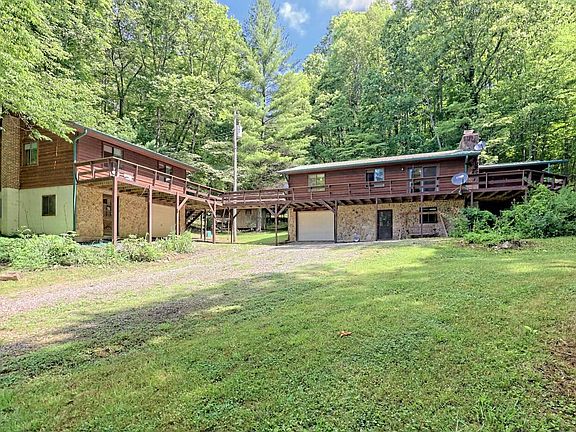 Bring your horses to graze in the pastures! Privately located in desirable Peachtree community, this home has it ALL! Home has 2 bedrooms and 1.5 bathrooms on the main level overlooking beautiful pastor and mountain views. The basement has a second living room with fireplace, full bath, 1 car garage, and laundry room. The entire house is wrapped with an oversized deck that leads to an additional detached garage with a workshop, topped off with a 1 bedroom, 1 bath apartment. All this on over 13 acres of private land with blueberry bushes, blackberry bushes, pear tree, garden area with fertile organic soil, and wildlife galore. Property has hiking trails. Property has open firewood structures, storage buildng, barn and stables. Chicken coop This property has something for everyone....and their friends and family