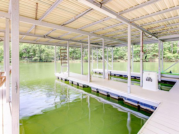 Custom built lake home on the South end of the lake with 5BR/3.5 baths and deep Year Round Water! This home has a bonus workshop for all your handyman projects or could be turned into a bunkhouse! Outdoor living is a premium with large screened porch for entertaining and open deck for lounging. Enter the home into a custom kitchen with 2 stoves, large dining area and spacious great room with walk out to deck. The primary suite is located on the main level. Master bath has separate shower and oversized vanity. Two large walk in closets. Upstairs are four generous bedrooms for guests and two full baths. Attached 625 SF garage has storage for all your water toys and boats. Double bay floating dock with lift and upper deck. All of this and more with gorgeous views for Lake Wedowee. Generac generator for main level power outage if needed. Must see all this home offers for family and friends and year round living!