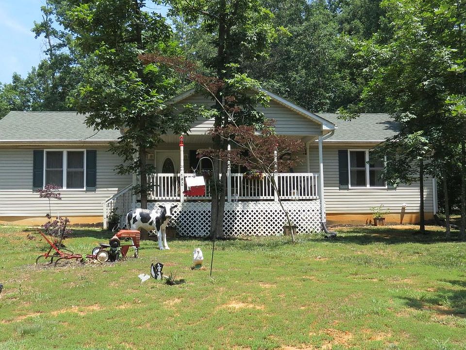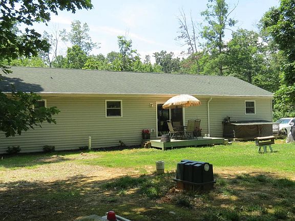 WALKING DISTANCE TO THE SHENANDOAH RIVER. This ranch home is move in ready and offers room for expansion in the unfinished basement. Built in 2012, this home offers 2 large bedrooms, wall to wall kitchen cabinets, dining rm, living rm w/gas fireplace, laundry/pantry and full unfinished basement with rough-in bath and connecting stairs inside and outside. The septic is for a 3 bedroom making it possible to add the 3rd bedroom. Situated on over 1 acre of park like setting , the exterior offers a covered front porch, rear deck and a 24x24 Detached garage w/storage space. Walk to the deep waters of the Shenandoah River, community ramp, dock and picnic area.
