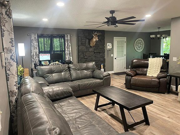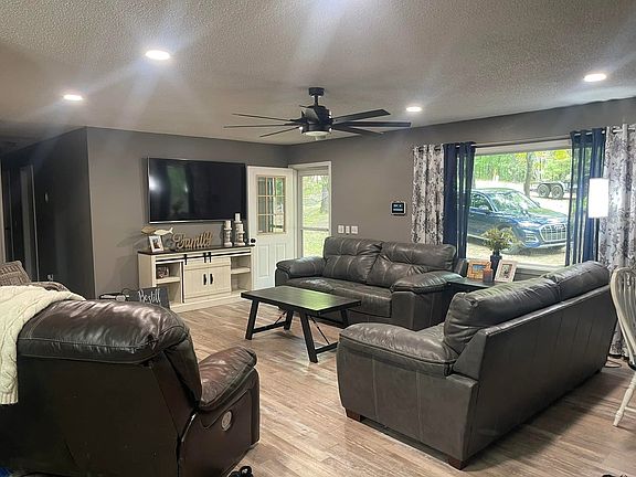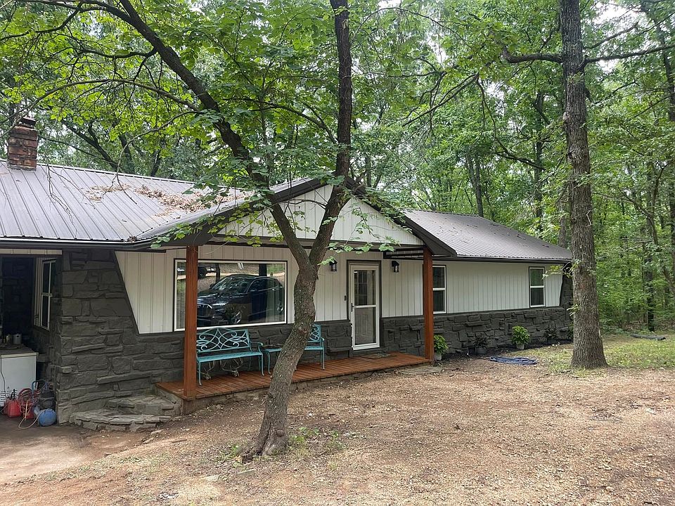 If you are looking for a tranquil place to live, look no further! This fully remodeled 3 bedroom, 2 bath home is in a gated resort community, Flint Ridge, in Kansas Oklahoma just 25 minutes from Locust Grove or 15 minutes to Siloam Springs. This property has all of the privacy and nature you could want! Do you love to fish or be outdoors? You can just walk down the trail, next to the house, for direct access to a private lake, Bear Lake, where you can fish, swim, or even kayak. This home has been remodeled with wood plank floors, new paint, and upgraded appliances in the kitchen including large refrigerator and LG air fryer oven. The washer and dryer will also stay with the home if desired. The master bedroom has a walk-in closet and ensuite bathroom. Has an attached carport with utility closet for storage and extra fridge. Large back deck to lounge on and enjoy nature! This resort community offers access to the Illinois River, camping, floating, hiking, 2 pools, and recreational area complete with bball court, tennis court, park, and mini golf. Pets can be negotiated. I do not have updated pictures of laundry room, master bedroom (this picture shows carpet and brown walls but the flooring and paint is the same throughout the house.) and ensuite bathroom, or 1 guest bedroom. I will update these photos once I have them in about a week. If you have questions or want to view please call or text. Available June 1st and 1 year lease is required. You are required to turn on utilities in your name.