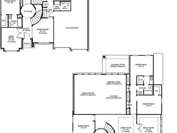 Front porch opens into a grand entryway embraced by a private home office with French doors, a formal dining room, and a spiral staircase. A guest suite is off the main entrance and features a full bathroom and walk-in closet. The two-story family room boasts a 19-foot ceiling and a wall of windows. The kitchen hosts a morning area, an island with built-in seating, walk-in pantry, butler's pantry and additional storage space. The primary bedroom features a wall of windows. The primary bedroom hosts dual vanities, garden tub, separate glass enclosed shower, two-walk-in closets, a linen closet, and secondary access to the utility room. Upstairs on the second level you are greeted by a game room with French doors leading into a separate media room. Secondary bedrooms featuring walk-in closets and a Hollywood bathroom. An additional private guest suite completes the second floor. Two-story covered backyard patio. A mud room with a half-bathroom is located off the three-car garage.