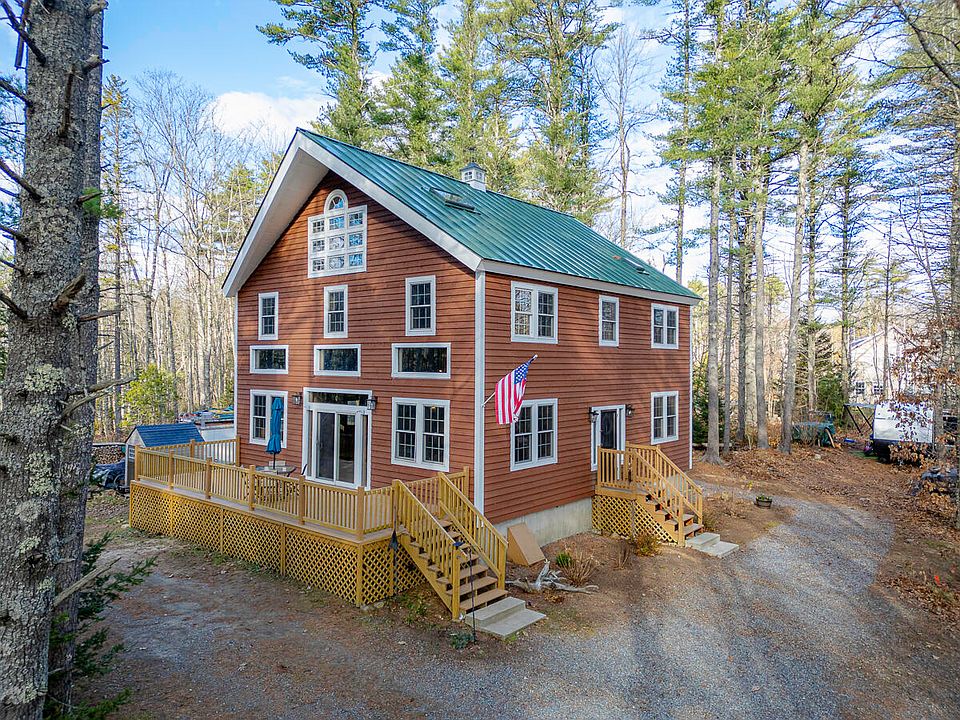 Stunning John Libby post & beam timber frame Colonial custom built in 2017 on 24.8 acres using wood that was cut and milled on the property. Featuring a beautiful, open-concept great room centered around a cozy wood stove and offering numerous windows that bring the outside in. Hand-hewn cabinetry, a wall of open shelving, soapstone countertops, and a hammered copper sink are just a few of the kitchen's special attributes. Directly access the large deck from the living/dining areas for easy entertaining. The first floor also offers a first floor bedroom, office, or den and a full bathroom. Upstairs, a spacious loft area provides not only a bird's eye view of the gorgeous framing, but a flexible space for a library, media corner, or overflow guests. The primary bedroom has an en suite full bathroom accessed through a sliding barn door as well as a walk-in closet. A third bedroom completes the second floor. Outdoors, enjoy walking the trails that traverse the acreage, or relax around the fire pit. With a large stash of surplus lumber already milled and ready for the next owner's use, your imagination is your only limit as you consider the possibilities for further expansion. Ideally located in a secluded yet convenient part of Brunswick, you'll be 4 minutes to the beach at Thomas Point Beach and Campground, 5 minutes from shopping and major road access at Cook's Corner, and within 10 minutes of both Brunswick's Maine Street and historical Front Street in Bath. Access the Amtrak Downeaster at Brunswick Station, or drive 35 minutes to enjoy dinner in Portland's Old Port.