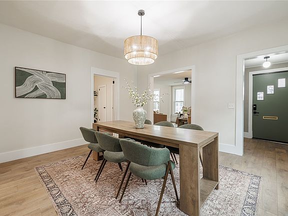 Offering 2 bedrooms and 2 full bathrooms, this thoughtfully redesigned home features new scratch-proof, waterproof flooring throughout and a layout that balances everyday functionality with effortless entertaining. Enter through a welcoming foyer that opens into a spacious dining room, perfectly sized for hosting memorable dinner parties. The front living room provides a cozy retreat for evening relaxation and flows seamlessly into a versatile flex space—ideal for a home office, play area, or reading nook.