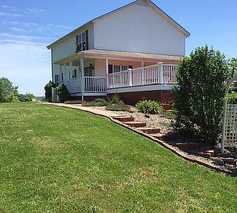 Beautiful home with a private setting on 4.5 acres. There are three bedrooms, 2.5 baths, family room with fireplace and vaulted ceiling, living room with fireplace, kitchen with stainless steel appliances and breakfast bar, dinning room and laundry room. There is a large deck over the 2 car attached garage with great views and beautiful sunsets large enough for a large family gatherings. There is a back deck off the family room for smaller gatherings. You can enjoy rocking on the front porch over looking the expansive lawn. In addition, there is a two car detached garage with a large storage area above and its own central heat and air. A fire pit awaits for nights making s'mores. Call 606-224-6293 or 606-224-4961for a private viewing.
