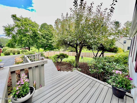 Lots of surprises since this house was sold last...2 car garage has been temporarily converted to a year 'round in law apt....and with lots of pizzazz; walls have been opened up on the main living level, giving it a much more spacious feel; exercise and rec room on the lower level with a new full bath; 2 BR and full bath on main level and 2 BR plus full bath and office on 2nd level; and the most amazing deck/covered pavilion has been added on the back for you to enjoy total privacy in your fully fenced yard...perfect for dogs, cats or kids! High Efficiency Gas Boiler, roof done in 2018, freshly painted throughout. Come, stay, and enjoy this lovely home and all that the Berkshires has to offer!