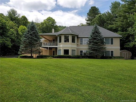 VIDEO AVAILABLE. Priced below appraisal. More Photos Coming soon after interior painting complete Full CPO. Year round views, 15 min to downtown Asheville and almost 12 acres, from this upscale home with 3 owners suites (bed and private baths), 2 on main level. 3 stall garage, and plenty more parking. Large kitchen open to keeping room with views, and living room. Meticulously maintained. Borders creek. Lower area has office or den which opens to mini bar kitchen and wine storage, with lots of room for play. Open up the doors and hear the creek rushing below. Private location.