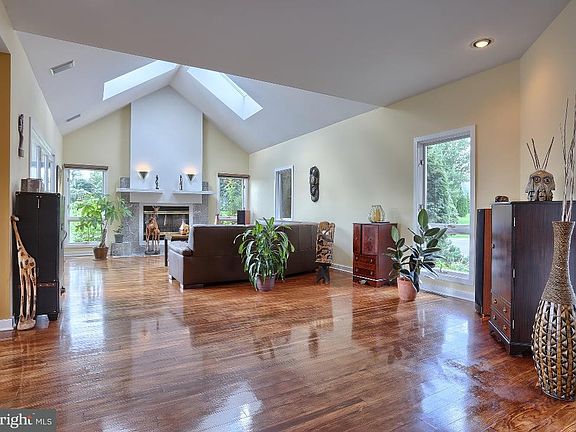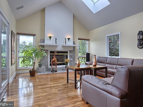 Architect designed contemporary tucked away on 9.9 acres at the end of a cul-de-sac. Custom designed by Willigerod & MacAvoy architects blending the house with the views in a beautiful combination of function and aesthetics. Inside, the home opens up to vaulted spaces with an abundance of natural light. Features include 2 fireplaces, and a large wrap around deck offering privacy and tranquility. European style kitchen with custom Bertch cabinets opens to a bright breakfast area. A warm stone fireplace accents the family room with vaulted ceiling and skylights. Remodeled and updated baths, first floor office and laundry room. Finished, walk-out lower level includes family room, full bath, and potential for 5th bedroom. Efficient geo-thermal 2-zone HVAC. Large yard with a full size working tennis court, and attached garage to accommodate 3 cars. Seller is offering a $10,000 credit for exterior painting. Pick the color of your new home!