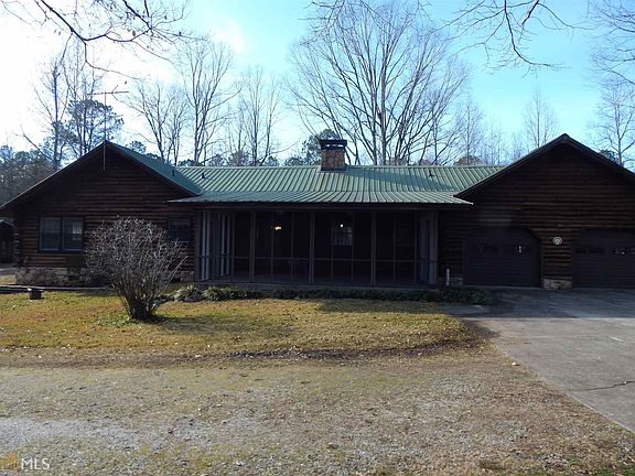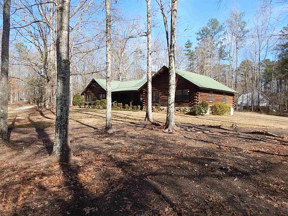 Beautifully constructed log home on 5 acres. Home features Large GR with enormous stone FP w/ vaulted ceilings... wood beams and LED wafer canned lighting continues into newly renovated kitchen. Backside of fireplace is in the kitchen which features grey cabinets, granite, new stove, DW and farmhouse sink complete an open and airy feel. Heart of pine floors thru out except for 1 bedroom(new carpet). 3 BRs on one side have large rooms, hall bath (with whirlpool tub and new vanity) MB has wooden barn door leading to MBR (new tiled walk in shower with glass sliders and new vanity. 1 BR on the other side has private bath. Screened porch off dining area. Separate 26X36 2 car garage/workshop and tall 28x34 pole barn can fit RV. GEO Thermal HVAC. Tin roof completes this beautiful wooded setting. Ready for new owners that will appreciate this beauty!
