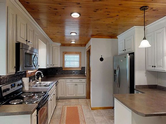 Peaceful setting of this 2 Bedroom cabin only 2.4 miles to boat ramp. Easy access to park your lake toys in the open two bay garage with large storage area. Lots of parking spaces that also has electrical hook up for camper or RV. There is also a small barn with tack room. The kitchen has been completely renovated and includes all appliances with washer and dryer. The home sits on 3.5 lots and owner is also including 2 lots across the road. See attached plat in photos.