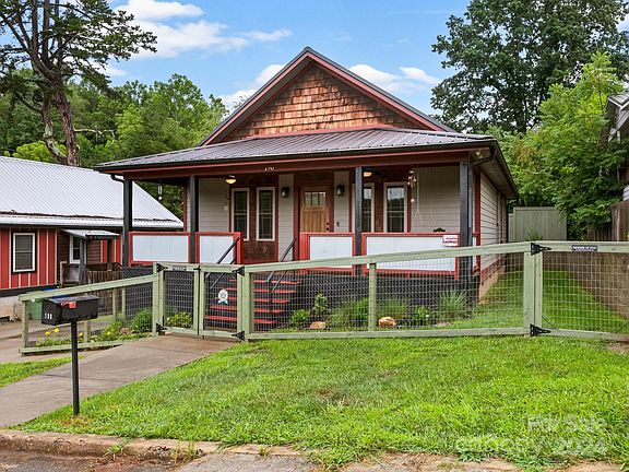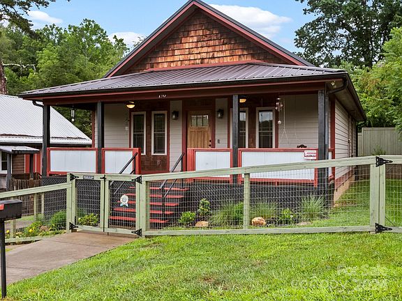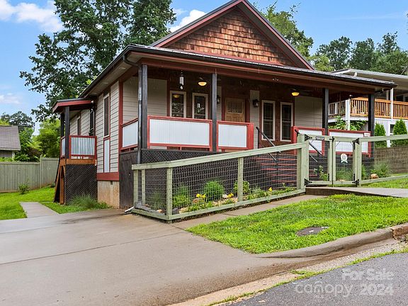 This attractive bungalow features 2 bedrooms & 2 full baths, & blends modern amenities with style, convenience & comfort. Located just minutes from downtown Asheville, the River Arts District, river access, parks, greenways, hospital, breweries, Cultivate Climbing, & so much more. Easy walk to Carrier Park or Haywood Road. Open floor plan with a living area that boasts vaulted ceilings & ample windows with abundant natural light. Beautiful hardwood floors throughout, recessed lighting, ceiling fans, stainless steel appliances, granite countertops, & a dedicated driveway. Large handsome covered front porch with stained wood ceiling, ceiling fans, & porch swing. Metal roof & a partially fenced in yard.