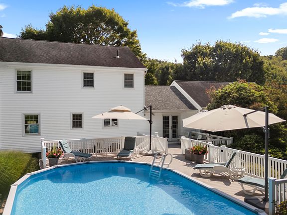 Offered for the first time by its original owner, this well-maintained 3-bedroom, 2.5-bath home is located in one of Mystic's most desirable neighborhoods. The home features an oversized family room and a beautifully updated kitchen with custom cabinetry, quartz countertops, built-in dining, and rich teak hardwood floors that flow seamlessly into both the den and family room-creating a warm, cohesive living space. A formal living and dining room combination with a cozy fireplace provides an inviting setting for entertaining or relaxing at home. All bathrooms have been tastefully renovated, and the spacious layout includes three comfortable bedrooms featuring a primary suite with en-suite bath. Step outside to a large, fenced-in backyard with mature trees, a professionally maintained lawn, and a stunning two-tier Trex deck overlooking a refreshing in-ground pool-perfect for outdoor living and entertaining. The true-to-size two-car garage includes a large unfinished space above, ideal for a future in-law suite, office, or studio. Additional highlights include central air and a leased solar system that brings your electric bill down to zero-making this home both comfortable and energy efficient. Just a short walk to downtown, you'll enjoy easy access to shops, restaurants, and waterfront charm. The home is also conveniently located near major employers like Electric Boat, Pfizer, and the Naval Submarine Base-offering both lifestyle and convenience in one exceptional property In addition to all the features mentioned above, the oversized driveway provides ample parking, including convenient side parking that keeps the garage easily accessible. The home also includes gutter guards, which help keep the gutters clear and reduce maintenance. Altogether, this property offers the ideal blend of comfort, convenience, and coastal charm-making it the perfect place to call home in beautiful Mystic!
