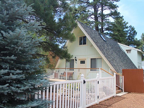 Charming cabin in Mountainaire! Come relax out back on the paver patio and enjoy the beautiful flowers, trees & pond. Out front you will love the curb appeal with white fencing, mixed tree variation and variety of flowers. Don't miss out on this well maintained 2 bedroom (plus loft), 1 bath, 1,344 sq. ft. & a 1 car garage. Other interior features include T&G vaulted ceiling in living room, granite counter tops, breakfast bar, tub/shower with tile surround in bathroom & downstairs bedroom with large sitting area. Very cozy! This will make a great year round or vacation cabin!