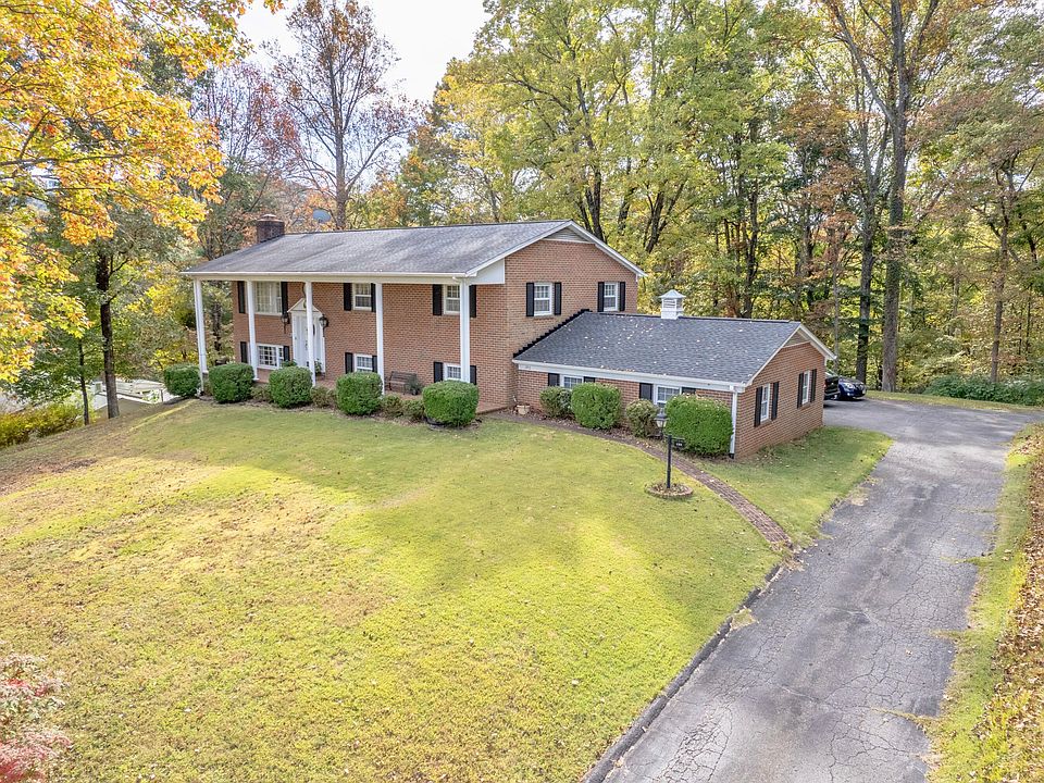 This all brick split level on a 1 acre has much to offer. The entry level has 3 bedroom and 2 full baths, primary suite with a walk-in closet and tiles shower. Living room open to dining room and kitchen with stainless dishwasher, refrigerator and built-in microwave, pantry, and has access to the deck. Lower level offers a large family room with a kitchenette, 2 additional bedrooms, full bath and laundry room/workshop. Attached oversized 2 car garage, partially shaded backyard. Enjoy the large front yard relaxing on the covered porch.