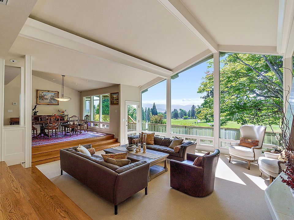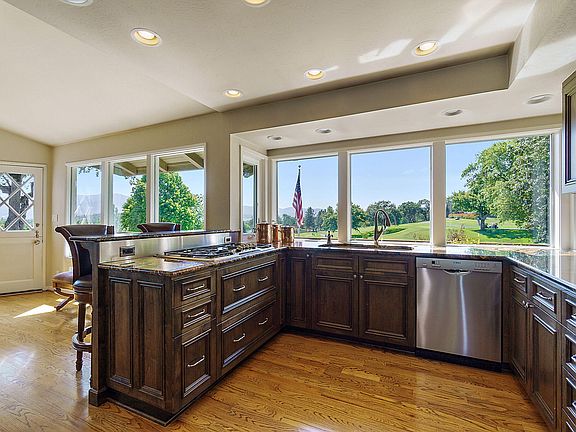 LOCATION and VIEWS! Exquisite home overlooking the 13th green of RVCC. This 4 bed, 3.5 bath home offers luxury and practicality with PANORAMIC VIEWS! On the main floor you'll find a chef's kitchen w/ gas cooktop, granite counters, and stainless-steel appliances. The large primary suite has automatic blinds, heated bathroom floors, air jet tub, and a custom walk-in closet. A half bath off the kitchen, 2 guest bedrooms (or home office), full guest bath, and 2 gas fireplaces - don't miss the finished attic, fun for kids or storage. Downstairs has guest quarters w/ full bath, guest room, magnificent wine cellar, large wet bar (possible kitchenette) and living area. Enjoy the oversized 2 car garage, and added parking for a golf cart or other toys. Large deck for entertaining, gorgeous swimming pool (new electric cover), and course access. Designed by renowned architect Alex Diepenbrock, the home has been tastefully remodeled with attention to detail and an eye for quality. Come tour today!