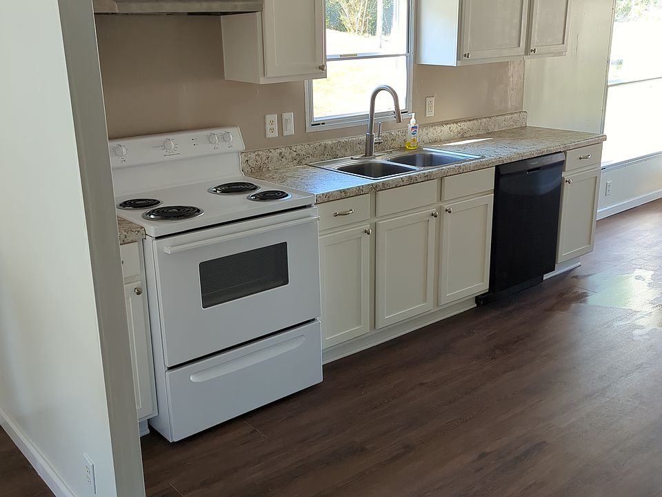 Newly remodeled double wide - with all new cabinets, luxury vinyl plank flooring, new dishwasher, new bathrooms. New back steps with landing and large back yard. The option of a month to month lease available.