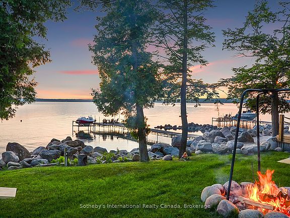 Welcome to 190 Melissa Lane, a charming custom built French Inspired waterfront retreat nestled in the prestigious community of Cedar Ridge, Tiny, Ontario. This high end home is approx between 5000 -6000sqft - 6 Bdrms + 5 Bthrms (2 Bdrms + 1 Bthrm + Kitchenette in the Coach House above the heated 2 car garage). The home is situated on 153ft of west facing beach on a 2 acre lot, surrounded by majestic trees with recently renovated landscaping and outdoor lighting for added privacy and ambiance. You will fall in love with views from every room of the deep turquoise water of Georgian Bay. This home offers plenty of living space for added quests or extended family. The fully finished basement includes travertine floors, antique brick themed walls, custom bar, wine cellar, gym, sauna, bathroom/change room, large wood burning fireplace, family room and full floor to Ceiling walkouts to the lake. Radiant floor heat through out keeps this home warm and cozy during the winter months. Additional heat pumps/ac's located in the coach house and basement gym and upstairs bedrooms for added guest comfort. Embrace the lakeside Tiki Hut with 3 different grilling BBQ's, 100amp power for future hot tub and added shore power, bar sink, bar fridge, fire pit and multiple sitting areas to soak in the incredible Georgian Bay sunsets. This property offers the perfect blend of rural tranquility and modern conveniences. Explore nearby hiking trails or discover quaint shops and restaurants in Lafontaine, Penetang or Midland. Boating enthusiasts have easy access to some of the best boating/anchorages in Southern Ontario. This picturesque property, offers an unparalleled opportunity to embrace the beauty of waterfront living on Southern Georgian Bay.