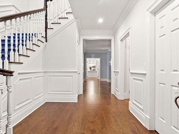 Newly-refinished hardwood floors! New quartz countertops! Fresh paint & landscape, and more! This beautiful four-bedroom townhouse, just two blocks from Greenwich Ave, boasts lofty ten-foot ceilings, exquisite custom millwork, and a three-story private elevator. Custom built in 2006; this 4,500 square foot home offers optimum living within walking distance to the train, schools and shopping and dining districts. A wraparound front porch, accentuated by stately columns, unfolds into a gracious entryway with hardwood floors and extra-wide crown molding. Enjoy the pine-paneled library just off of the entry hall, with built-in cabinetry and gleaming bay windows. Gourmet kitchen with center island. Plus butler's pantry and wine vault. Elegant Master with steam shower and tub. Three double bedrooms with ensuite baths.