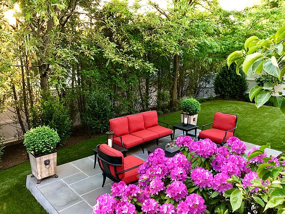 Spacious, private backyard paradise! A unique natural & peaceful retreat, in the heart of downtown. This beautifully landscaped 4 bedroom townhouse, just 2 blocks from Greenwich Ave. boasts lofty 10-foot ceilings throughout, exquisite custom millwork, and a 3-story private elevator. Custom built in 2006, this 4,500 sq. ft. home offers optimum living within walking distance to the train, schools, restaurants and shopping. Wood paneled library just off of the entry hall, with built-in custom cabinetry. Two fireplaces. Sun-drenched gourmet kitchen with center island, marble counters and butler's pantry. Elegant master with his/her en-suite baths & closets. Oversized 2-car garage.