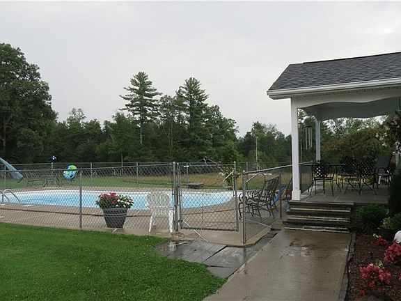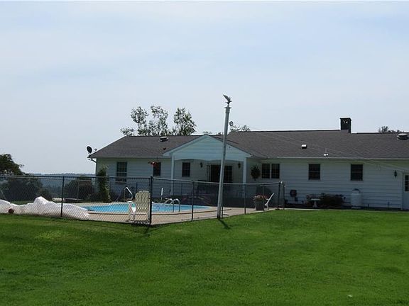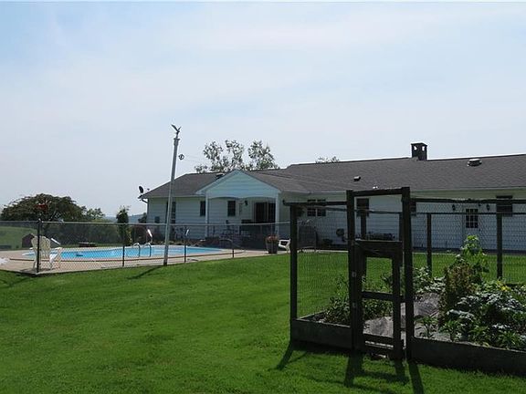 Wonderful Country Ranch! This great home features a large living room with lovely fireplace, dining room with sliders to a serene covered porch, kitchen with a lot of cabinets, laundry/mud room, central vacuum three bedrooms and 2 baths, including a master suite, a full unfinished basement that is great for storage, workshop, etc. plus a 2 car attached garage and heated concrete walkway to the house. There is also a nice, fenced inground pool, small garage for all your toys. All of this nicely set on 5.6+/- park like acres.