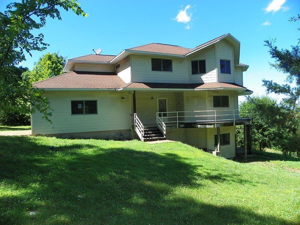 Uniquely designed tri-level home near the AR-MO stateline. This home features a wrap around deck on the main level, stainless steel cabinets in the kitchen. Master and second bedroom upstairs both have private bath. Property sits on rolling hillside with gorgeous views, private well. Needs TLC. Sold AS-IS, no repairs.
