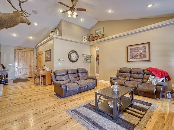 This gorgeous Rigby home boasts over 5,200 sqft., sits on over an acre of land AND has a 1,200 sqft. shop! The main floor features a gorgeous front entry with tall ceilings that is open to the main floor family room! Off of the family room is the large kitchen with granite countertops, a gas range/oven, large island with an extra sink and a dining area! Down from the kitchen is a hallway that has a large walk-in pantry, massive laundry room with lots of counter space and cupboards, even a sink! In this same area of the home is a half bathroom. On the main level is the master bedroom with an ideal master bathroom featuring a deep jetted tub, separate shower, a two-sink vanity, separate shower and a large walk-in closet. There's two other bedrooms and a bathroom on the main level! There's a spacious bonus room above the 3 car garage that makes for a great game room or movie room! The basement of this home has 4 large bedrooms, a bathroom, a workout room, washer and dryer connections, storage room and a big living room with a corner gas fireplace! The outside of this house has a fully-fenced-in backyard, an open deck, a garden area and plenty of space to park your trailers and toys! CALL or TEXT the listing agent to schedule a showing! *Buyer to verify all information provided*