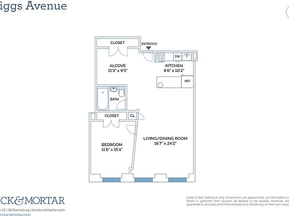 *1 bedroom with an alcove* Floor plan of similar unit The residencies in this building create environments that speak to Brooklyn's history and unique style. The structure was erected in the early 1900s, operating as a Steam Factory, and still retains many of its' timeless characteristics. Iron pillars, exposed brick, original factory arching windows, and expansive interiors set the stage for homes that are warm, inviting, and memorable. Each loft-like interior presents high ceilings, oversized living/dining areas, and an update to kitchens and bathrooms installed just over 10 years ago. With superb management by onsite superintendents, the hallways, stairwell, unique entryway-to-lobby, and one of a kind elevators are kept in impeccable condition. Residents can enjoy a few amenities, such as a wooden rooftop deck facing the Manhattan skyline . Around the way those who reside in this building have access to a seemingly never ending list of outstanding eateries, boutique shops, supermarkets, banks, and nightlife options. From stunning rooftop bars at the William Vale & Williamsburg Hotels to the Smorgasburg and events at McCarren Park there are no shortage of things to get into. For commuting needs there are many options to make your way around the Boroughs or Manhattan such as the Bedford L, Lorimer L/G, Nassau G, East River Ferry, and bus stop at buildings' foot.