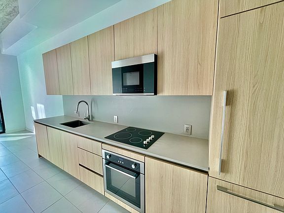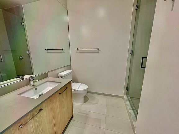 Beautiful brand-new apartment with stainless steel appliances, vinyl flooring, quartz countertops, 14-foot ceilings and smart home features.