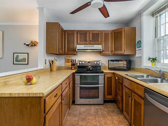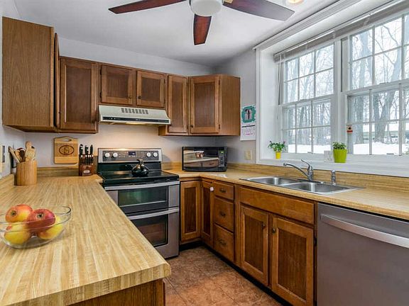 Cute, move in ready condo in Colchester's wonderful family (and pet!) friendly Sunderland Woods neighborhood! You'll love the cozy fireplace on cold winter nights and the private back deck overlooking the woods on summer afternoons. Enter the home into a convenient tiled entryway with a large storage closet and beautiful chandelier. Step down from the entryway and into the bright and open living area. The open kitchen, with plenty of counter space, features a newer oven, dishwasher, and ceiling fan. The large kitchen window has a deep sill, a perfect home for house plants. The spacious living/dining area has a brick fireplace, huge glass slider out to the back deck, fresh paint, new flooring, and new crown molding. A half bath is also found off the living area. Upstairs are two bright bedrooms (both with large closets), a full bath, and laundry closet. The unit has plenty of storage throughout, including a storage shed on the deck and in the carport. The home is tucked away in a peaceful, pet friendly association with a pool, tennis courts, and a community garden. Conveniently located to shops, I-89, and the rest of Chittenden County.