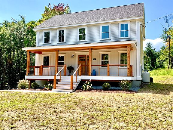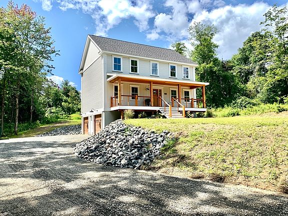 Set in a charming hillside of Shelburne you’ll find this captivating brand new construction farmhouse. Less than 10min to I-91 in Greenfield, & convenient to the lovely villages of Shelburne Falls & Historic Deerfield, the location is private yet accessible. Admire antique stonewall lined frontage atop the full length farmers porch clad with tropical hardwood decking and fir timbers. Inside, the 1st floor offers a welcoming central living space w/ white oak hardwoods throughout, custom built ins, as well as an office/bonus room. The magic is in the details of the chefs kitchen appointed with custom built cabinetry, quartz counters, and elegant fixtures. Upstairs, the primary bedroom features an en-suite spa like bath w/ soaking tub & walk-in shower. 2 closets plus a large walk-in offer ample storage. Enjoy tranquility of the private backyard, the beauty of nature unobstructed by cable railings on a rear deck. This truly memorable home is a must see!