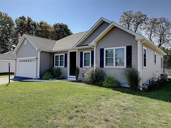 Better than new 2 bedroom 2 full bath ranch built in 2017. This is perfect a condo alternative. Kitchen has granite and stainless appliances, Living room has gas fireplace, hardwoods, office, 2 car garage large fenced in back yard gas heat, and new on demand hot water heater, AC, full basement.Close to highways, shopping. Across the street from Kirkbrae Country Club. Act now wont last.