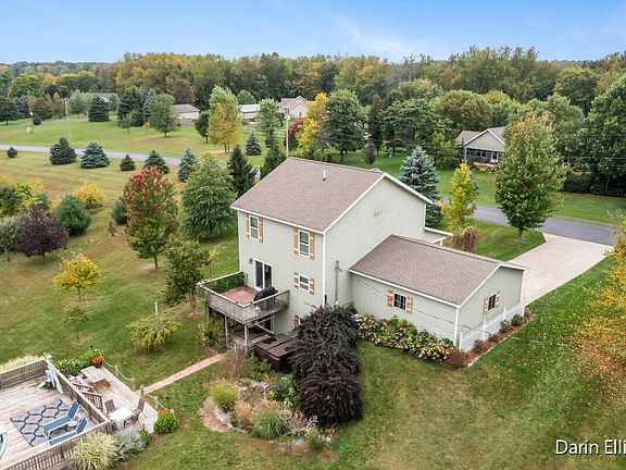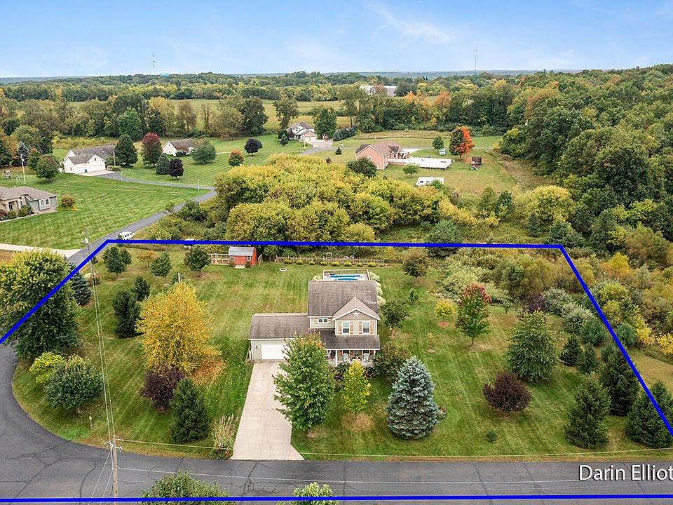 2013 Built 2600+ sq ft, 3 Bed, 4 bath Home located on a 1.5 Acre corner lot in one of Ionia's most sought-after neighborhoods. Main floor boasts a large wide-open floorplan. Country kitchen has ceramic tile floors, all modern appliances included, snack bar with stools, built-in desk and slider access to deck and beautiful back yard views. Upper level has 3 good sized bedrooms, full bath, and a huge Master suite with walk-in closet and a double sink custom vanity and tiled private bath with shower and garden tub. The Great room/family room in the fully finished walkout basement comes with a gorgeous gas fireplace. There is a must see custom built rustic ½ bath that I wish I could take to my house. Main floor laundry room, ½ Bath, tons of closet space, and access to 2-stall attached garage. This house comes with just about everything, large pool with all the decking, hot tub and patio area, 12x16 shed, garden areas, fish pond, berry bushes, fruit trees, and professional landscaping at every turn. NG and HS internet at your fingertips. Fast possession. Hurry to show!