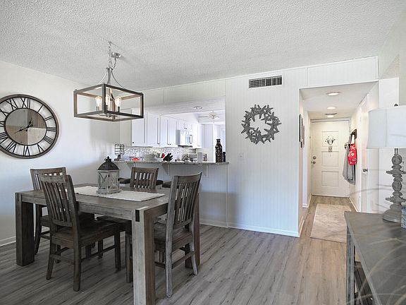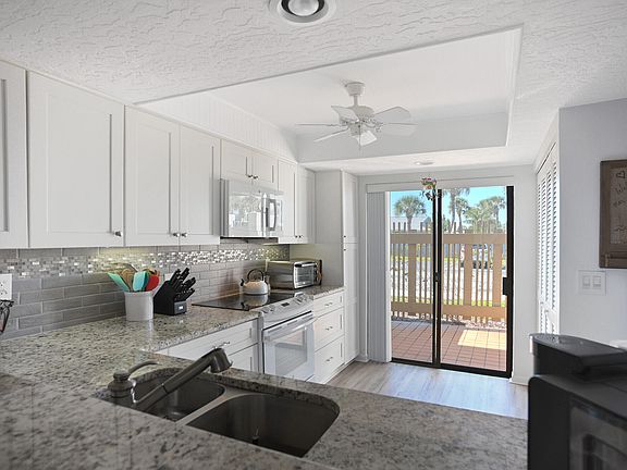 Welcome to this Paradise Beach Villas condo that has been completely remodeled from top to bottom! First floor unit is easy to access. You will love the luxury vinyl flooring throughout. Beautifully remodeled kitchen will impress with white custom cabinetry and white appliances & stunning backsplash. Kitchen has pass-through w/counter seating. Great room concept floorplan has spacious dining and living area. Both bathrooms have been elegantly updated with granite countertop & walk-in showers. Electrical panel was updated and interior painted. The A/C has a warranty until Oct 2025. This community has lots of amenities such as heated community pool, clubhouse & sauna. Play tennis or pickle ball on community tennis court. Parking for RVs or trailers offered. This complex is located close to everything with shops and restaurants close by. Walk to beach and get your toes in the sand! Furniture negotiable under separate agreement., Assigned space for unit and ample guest parking, Full-time maintenance person on site 40 hours a week.