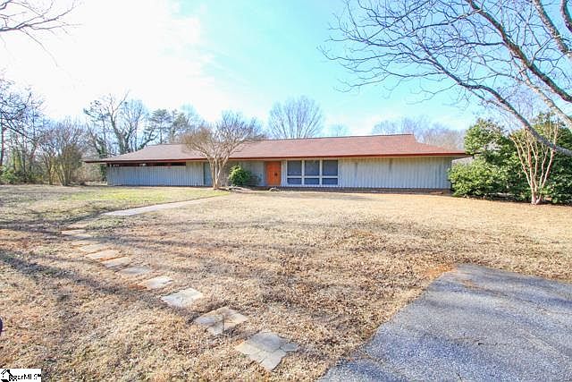 8+ Acres in Easley! Just off highway 153! Well-built contemporary ranch home on the back of the property with over 2700 sq ft. 3 brs , 2 baths, formal LR/Office & formal DR with picture windows. Sold As Is, this quality construction home features sleek lines, transom windows, vaulted ceilings w/ solid beams, slate hearth & brick fireplace in the Great Room. The kitchen offers a tile floor, stainless double ovens, cooktop, dw, refrigerator & pantry, plus a large marble serving bar open to the Great Room. Spacious rooms, walk in laundry room, and incredible L-shaped 14 x 39 Rec Room with 9 & 10 ft ceilings, wall of storage bins & custom built-ins. The Master Bedroom Suite has sliding glass doors with access to the back the patio with 2 closets, tile flooring, 2 sinks & tub/shower. Exterior building and long paved driveway. Relive the good old days with pecan trees galore. Enjoy the peaceful country setting minutes to the Easley Towne Center, schools, downtown Greenville & I-85. Possible commercial & development opportunities! Great Buy!