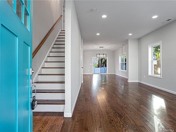 Spectacular new construction colonial set in convenient family neighborhood ready for immediate occupancy. This beautiful, well thought out design plan boasts an open concept floor plan with 9ft ceilings and lots of oversized windows bringing in tons of natural light. Spectacular kitchen with modern shaker cabinetry, quartz counters, large center island, stainless steel appliances, and a large trendy farm sink. Gorgeous hardwood floors throughout. Large master bedroom suite with a walk-in closet. Luxurious master bath with oversized shower stall and double vanity. 4 bedrooms on second floor all with large closets. Gorgeous modern tiled bathrooms. Second floor laundry room with cabinetry. Tasteful LED lighting throughout. Attached garage with high ceilings and oversized door. High efficiency gas HVAC system and tankless hot water heater. Large unfinished walk-out basement with 8ft ceilings for future expansion. Private fenced yard with stone patio. All set within minutes to all major highways, shopping, and Stratford and Bridgeport train stations. Call for private tour.