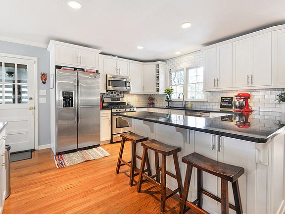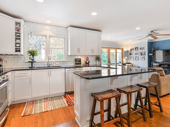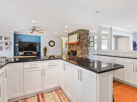 - Kitchen Features: Breakfast Bar, View to Family Room, Stone Counters, Breakfast Room, Cabinets White, Wine Rack