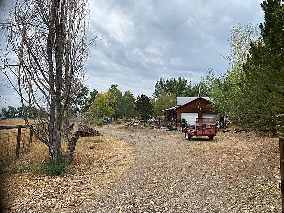 eight and a half acres with water rights and two wells There are two living quarters. Main house has two bedrooms with one and a half bathrooms Second detached living quarters has one bedroom and one bath with attached studio. Property is completely fenced with a Two thousand square foot shop/barn. Ideal horse property. Fantastic views with in a private setting. Property is accessed by a tree lined lane