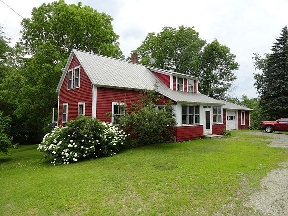 This is a very well maintained Cape style home with front porch and a back porch overlooking the large private back lawn space down to where Eastman Brook goes through the property. The house has an attached garage and walkout full basement. Recent upgrades include drilled well, metal roof, newer carpeting and new or refinished wood flooring, and upgraded kitchen. There are blueberry bushes, an apple tree, and perennial gardens. This is a nice home and property.