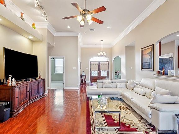 Step into luxury and comfort in this meticulously maintained 4 bedroom, 2 bath gorgeous custom home with over 3,300 total square ft. The stunning wood flooring, triple crown molding, 18” deep drop down ceilings and inviting fireplace create an atmosphere of elegance. The very large kitchen is open with a culinary haven, boasting granite countertops, a beautiful island, custom cherry cabinetry and a breakfast area– a dream for both chefs and entertainers. The living room boast 12 ft ceilings with triple crown molding & hardwood floors. Master suite is large with a luxurious master bath, jacuzzi tub & separate shower. A bonus room over the garage adds versatility, while the new AC unit ensures year-round comfort. Enjoy outdoor living in the fenced yard with a covered patio showcasing iron gates on both sides. This residence is a perfect blend of style, functionality, and pristine condition – your dream home awaits! A must see! Hurry and schedule your viewing on today. You don't want to miss this one!
