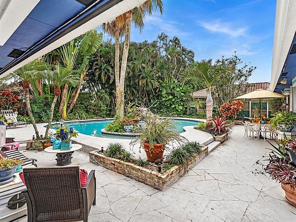 Price adjustment by motivated seller. Priced below recent appraisal. South Florida living at its finest! Paradise found in your own tropical oasis with: freeform pool, an island with waterfall & lush greenery. Plenty of patio space & seating areas with an outside shower & additional yard. Truly a place to relax & enjoy. Unique touches throughout. Updated kitchen & baths, tile floors in living areas & oversized family room lends to indoor, outdoor living & entertaining. Extensive family room featuring bar area, desk area and media center. Excellent floor plan with third bedroom & full bath perfect for in law, teenage suite. One way entry into El Dorado featuring 24 hr security, playground, tennis & clubhouse. Low monthly maintenance, close to hwy, shops & restaurants.