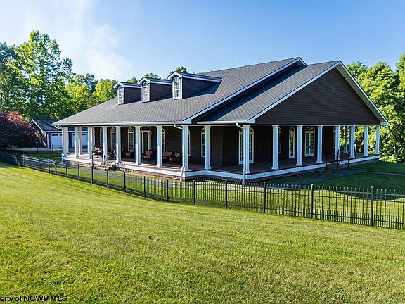 This gorgeous complete custom home is just a few minutes from downtown Bridgeport, right around the corner from the Pete Dye Golf Course, the Bridgeport Country Club and ten minutes from WVU/UHC hospital. The property is 3.66 acres of which part is enclosed with decorative aluminum fencing. Inside this 5000 + sq. ft. home is all red oak hardwood floors, custom tongue and groove wood walls and ceilings. There are 3 natural gas fireplaces with historic, antique mantles which came from the General William Dark home in Darksville, WV. All of the baseboards, window and door surrounds, and 12" antique inspired crown moldings was all fashioned and hand made at Heartland Planning Mill in Clarksburg, WV. There is a whole house and garage Generac generator, and whole house water filtration system. There are 3 newer HVAC systems. The outside building has electric and heat, with the walls and ceilings sheathed in the same tongue and groove wood as inside the house. All of the lighting was handmade by Authentic Designs in West Rupert, VT. The lighting is historical representations of authentic historic lighting from the New England territory. The Hampton Meeting House chandeliers in 2 of the bedrooms was replicated from a historic church in Simsbury, CT. You will also find Oaks Bluff chandeliers in the downstairs bathrooms, Bennington Village chandeliers in the dining area, and the Chittenden Round chandelier in the kitchen. Not to be outdone the living room area is adorned with 3 exquisite Metropolitan chandeliers. The two main bathrooms downstairs have the Argand sconces which are replicated from the time of Benjamin Franklin. Around the dining and living space you will find the Seaside Fan Sconces to give you the warmth and illumination of light without being overpowered. The kitchen has a white bronze 33" kitchen sink, a 60" Wolfe range with double oven and griddle, with a subzero refrigerator. There are assorted antique hanging cupboards throughout. There are stone floors in the kitchen and laundry area. The home has a wraparound porch and is entirely clad in quartersawn hemlock from the Granville Manufacturing Company, Granville, VT. The roofing is a 50- year rubber roof supplied by McClure Johnston Company, Clarksburg, WV. The property extends beyond the fencing and has the historic abutment of the famous Maulsby Bridge located on the lower side of the property. This home awaits a new owner that enjoys space and the refinement of splendiferous living.