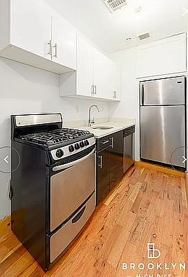 Spacious good looking 3 bedroom on a picture-perfect tree-lined block in Bushwick. EXCLUSIVE BROKERS REBATE! Three spacious queen size bedrooms, one bath. Spacious living/dining room area, central Ac/heat. The unit with does not have a skylight. Coat closet Spacious living space, cherry wood kitchen, with brand name appliances. Near transportation and everything else Crown heights is great for. Showings scheduled at your convenience.