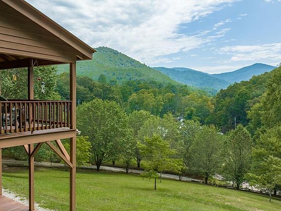 Relax to the sound of the rushing Cullasaja River and enjoy the stunning mountain views from the covered porch or lower terrace! Situated on 1.5 +/- acres, this 3-bed, 3-bath custom-built home is sure to WOW with 20' vaulted ceilings, T&G pine walls and floors, and lots of natural light! The kitchen features a breakfast bar and dining nook with a bay window to watch the autumn leaves fall! Main-level living home with the kitchen, living room, primary bedroom, and laundry all on one level! The primary bedroom features a walk-in closet, an en-suite bath, and stunning views overlooking the beautiful NC mountains! Upstairs, you'll find a cozy loft bedroom with an en-suite bath, sitting area, a large closet, and lots of light throughout! The finished basement has a bonus room, full bath, storage room, a single-car attached garage, workshop, and lower terrace. Lots of yard space and approximately a 5-minute walk to the Cullasaja River, where you can fish, tube, kayak, and more! Easy access to and from the home and located approximately 12 minutes from town!