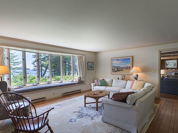 Privately Located near the end of Scraggle Point this 4-bedroom home has over 300' of waterfront and a deepwater dock on Wheeler Bay, a picturesque working harbor. The 4-bedroom home has an open floor plan with beautiful views of the water from every room. With a master suite on the 2nd floor and an in-law "apartment" above the garage. Beautifully landscaped and surrounded by old-growth woods, providing a spectacular natural setting.