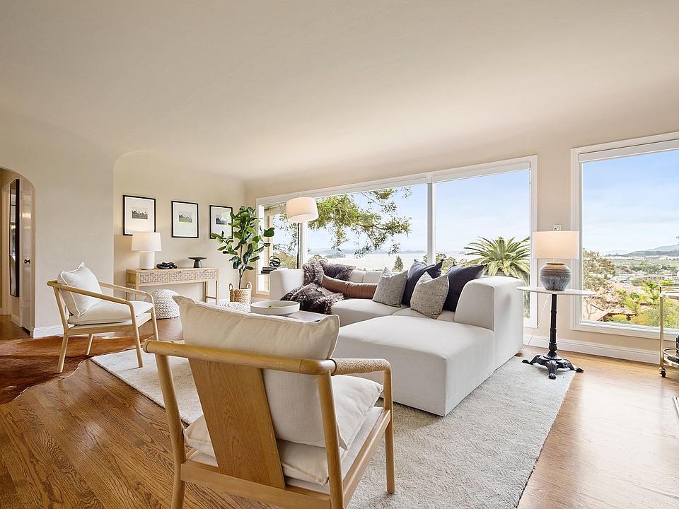 Available for the first time in 50+ years! Nestled in the coveted Country Club area of San Rafael, this stunning view property offers a rare opportunity to own an estate-worthy parcel with easy access to San Rafael's shops, restaurants and cafes. Set on a sprawling 1.7-acre lot (approx.), this home boasts gorgeous panoramic views of the bay and 2 bridges. Comfortable and inviting, with 4 well-appointed bedrooms and 2 bathrooms spread over 2 levels. The main level offers an open and airy living room, anchored by a cozy fireplace, perfect for entertaining family and friends. To the left of the living room is the kitchen and dining room; on the right are 2 bedrooms and 1 bathroom. Downstairs find 2 more bedrooms, an additional full bath, a spacious family room with fireplace, dry sauna, laundry room and wine cellar. Overall the interior atmosphere is one of relaxation and comfort. Outside, this home is a true entertainer's paradise, with multiple sitting areas from which to enjoy the view and a lanai/outdoor kitchen with game area. Perfect for al fresco dining fit for a few or a crowd. Feel as though you're living in your own private resort while enjoying the tranquil sounds of nature.