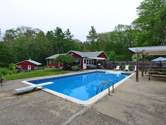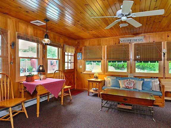 Country Charm in the heart of Woodstock. Covered porch invites you into the cozy Eat in Kitchen with wood stove. Custom built hutches and storage. Beautiful newer floors & ceiling fan. Tons of cabinets. Full Bath off the kitchen with Tile. Completely remolded enclosed porch off the kitchen is where you will love to relax and enjoy your beautiful yard. Formal Dining Room with Hardwoods. And Front Formal Living Room with hardwoods and fireplace. Large Bay Window. 3 Bedrooms with Hardwoods and another Full Bah. New replacement windows in 2013. Finished Basement not in square foot total, Built ins & Cedar Closet , laundry room (washer & dryer to stay), craft room, Workshop, Walk out Basement access to Garage. Newer Sigfridson 2 Car Garage and Separate heated office/man cave. All new Windows. Newer Buderus 4 zone furnace. In-ground pool with pool house, Pergola & patio, Bose Surround system will stay. Additional 1/2 acre lower lot purchased to make this a 2 Acre property. Updated Septic, New drilled Well, Deeded Right to Lake, small boats allowed. Easy one level living. Close to Shopping, restaurants & highway. Pride of ownership, this home has been lovingly maintained ready for you to enjoy.