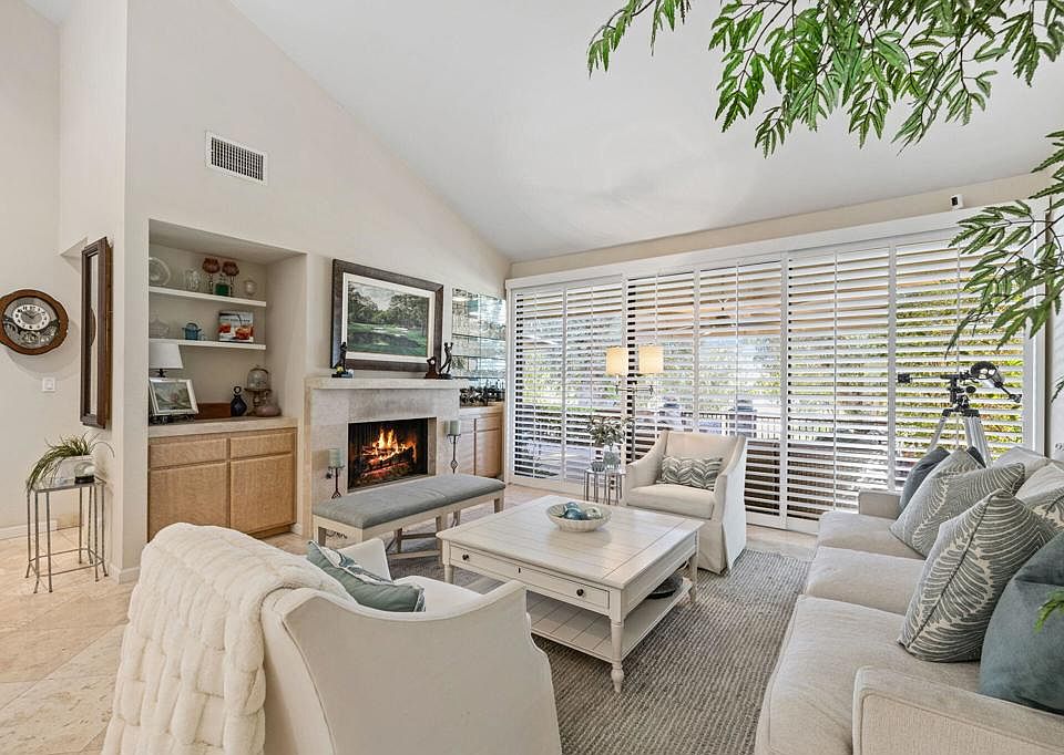 Great opportunity! Wonderfully updated 300 Max Plan in Monterey CC. Interior Cul-De-Sac location on an elevated lot and away from cart paths. Spacious 1670 sq/ft, 3BD/2BA floorplan. Designer flooring, paint and custom cabinetry throughout. Vaulted ceiling, raised hearth gas fireplace and wet bar in living room. Kitchen remodel also features granite counters, recessed lighting, matching Samsung appliances with gas cooktop, and energy efficient windows & patio door. Beautiful cabinetry, tile, lighting & hardware in remodeled baths too. Enclosed patio, complete with awning and built-in gas BBQ area, is perfect for enjoying the desert lifestyle. Finished 2-car garage includes epoxy floor, additional storage and power outlets, plus 1 golf cart and a refrigerator. Professionally landscape courtyard leading to a custom, glass inlaid entry door will welcome your guests. Just a short walk to a fantastic community pool too! 3rd Bedroom currently being used as a Den/TV. 27 holes of Ted Robinson designed golf, 13 tennis courts, 20 pickleball courts, bocce, and 37 pools for your enjoyment. Centrally located in the heart of Palm Desert, Monterey CC is one of the most active clubs in the desert!