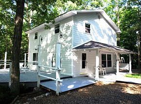 It's all about the privacy: House centered on 2.71 acres of trees. Lovely shaded driveway leads up to a 2 car garage and a house all nestled in the woods, with lots of decking for relaxing and watching the wild-life! Kitchen, Dining, stairs and Living Room have the most beautiful wood floors. House is neat and well taken care of. The home is surrounded by pretty rock gardens and flower beds. A home-crafted swing awaits you on the deck. Very peaceful! Roof is 6 years old. Exposed ceiling beams, most windows 5 years old; Vermont Cast wood stove; stainless steel chimney insert; stone fireplace; well designed septic tank system; security system is on.