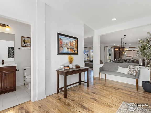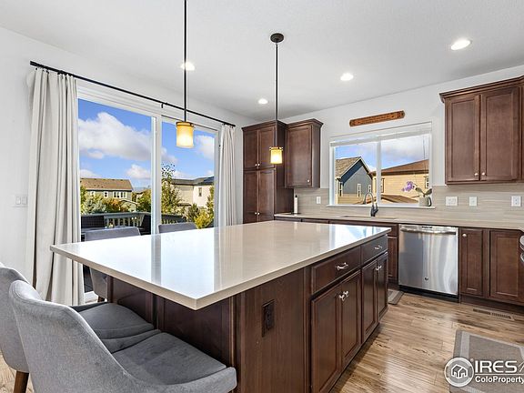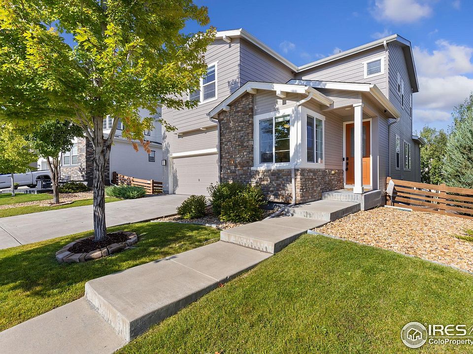 Turn-Key Two-Story with Modern Upgrades! This bright, open-concept 3-bedroom, 3-bath home shines with a large quartz island in the kitchen, stainless steel appliances including a gas stove top, beautiful laminate flooring throughout the main level, and a modernized staircase. Newer French doors add privacy to the main-level office, while built-in speakers in the Living Room provide a great surround sound experience. Laundry is conveniently located in the upstairs loft near the bedrooms, providing a stackable washer/dryer, laundry sink and shelving. A Jack-and-Jill bath separate bedrooms 2 and 3 and the garden-level basement is partially framed and wired with rough-in plumbing-ready for your personal finish. Views of the Rocky Mountains can be seen from the upper level and the deck. Enjoy the fresh, clean look of the exterior paint. Lower your hazard insurance with the Class 4 shingles that were installed in (2023). Solar panels are owned and can aid in the offset of electrical costs. Outdoor living is a breeze with both an upper deck and a lower patio overlooking the beautifully landscaped yard. Additional highlights include a Nest thermostat, Simple Safe security camera and Blink doorbell, an EV charger in the 2 car garage, and a fantastic community with 2 pools and 2 clubhouses. Parks and trails are located within biking distance to Erie High School and Downtown Erie! What are you waiting for? Set your showing today! This beautiful home is move-in ready!