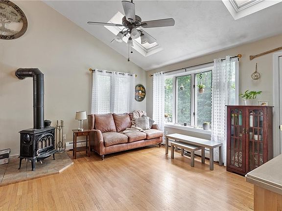 HIGHEST AND BEST OFFER BY 3:00 TUESDAY, 9/13. Ranch set on a spacious .44 acre lot. Kitchen with stainless appliances is open to a living room detailed with skylights, both rooms are accented with cathedral ceilings. This one level includes 2 bedrooms and 2 full bathrooms. The primary bedroom includes a sitting area and an up to date renovated bathroom. The finished lower level offers a family room with a fireplace - additonal living space. A custom cabana includes a hot tub that provides enjoyment in the peaceful wooded setting that surrounds this home. The yard has a large patio, as well as a deck-- great for entertaining. Seconds to the Foster Memorial Park where you can explore this recreation area along with it's hiking trails. 2 minutes to the Coventry Greenway Bike path.
