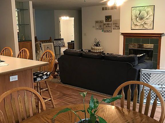 Condo finished basement French doors open to decorative pond. 2 fireplaces. All appliances and window trimming included.
